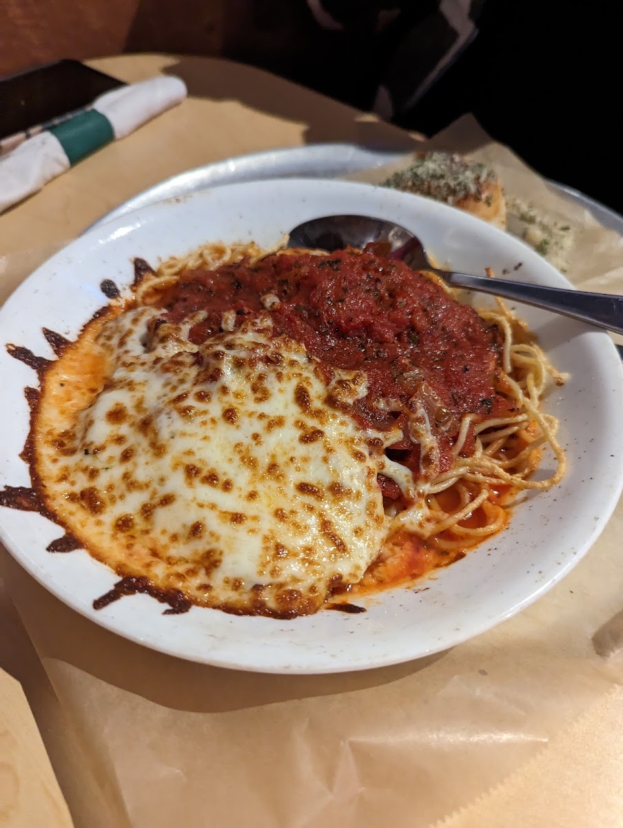 Started with the side Caesar Salad. Delicious dressing! Daily specials sounded delectable! Alfredo was a popular dish. Enjoyed the Grilled Salmon with Garlic Mashed Potatoes and Green Beans. Fish was perfectly grilled and delicious. Green Beans were unseasoned. Potatoes could have been hotter. Friendly and helpful service. Attentive to my gluten free needs.