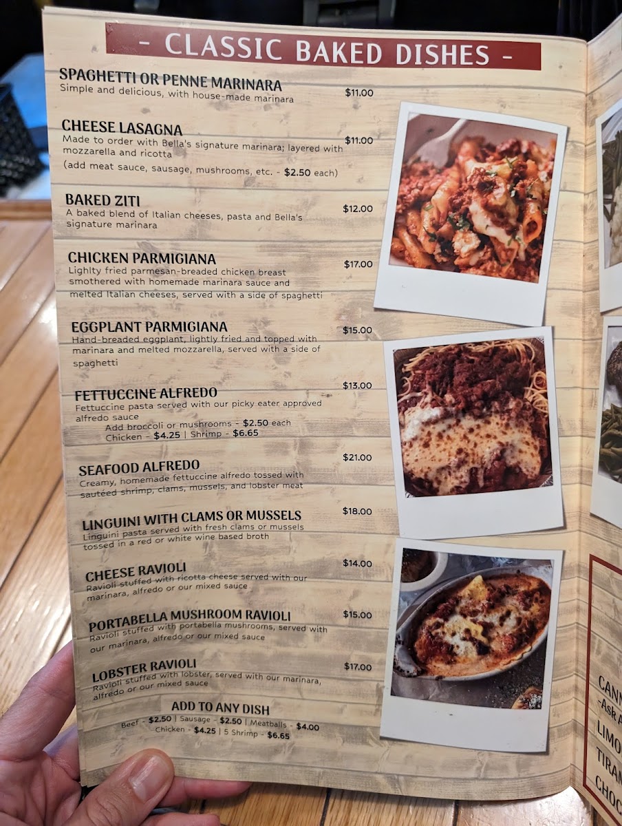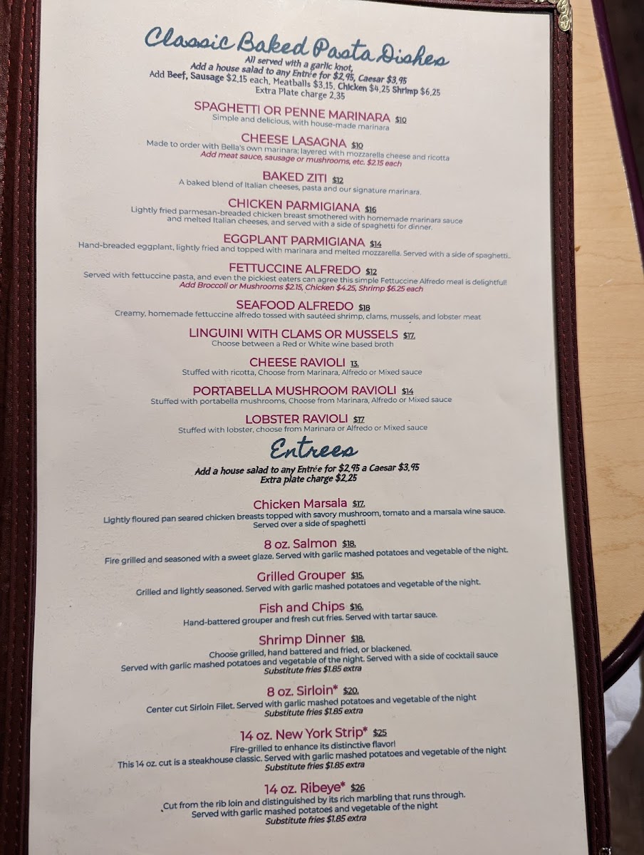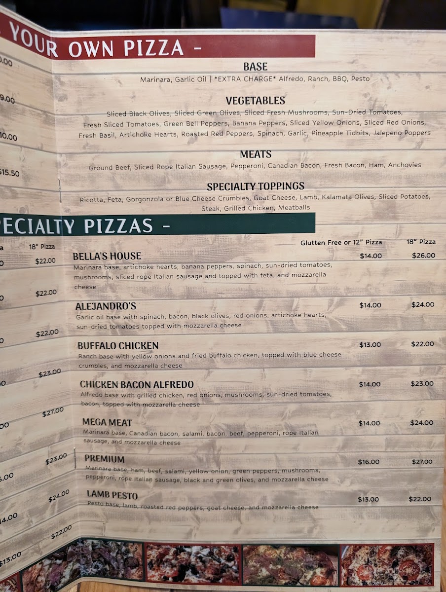 Bella's Steaks, Pasta and More Menu