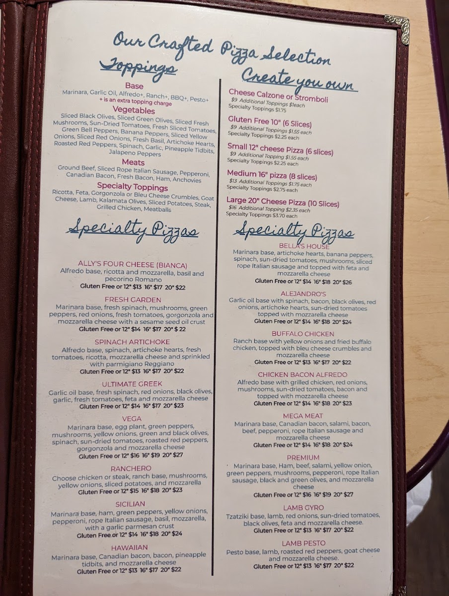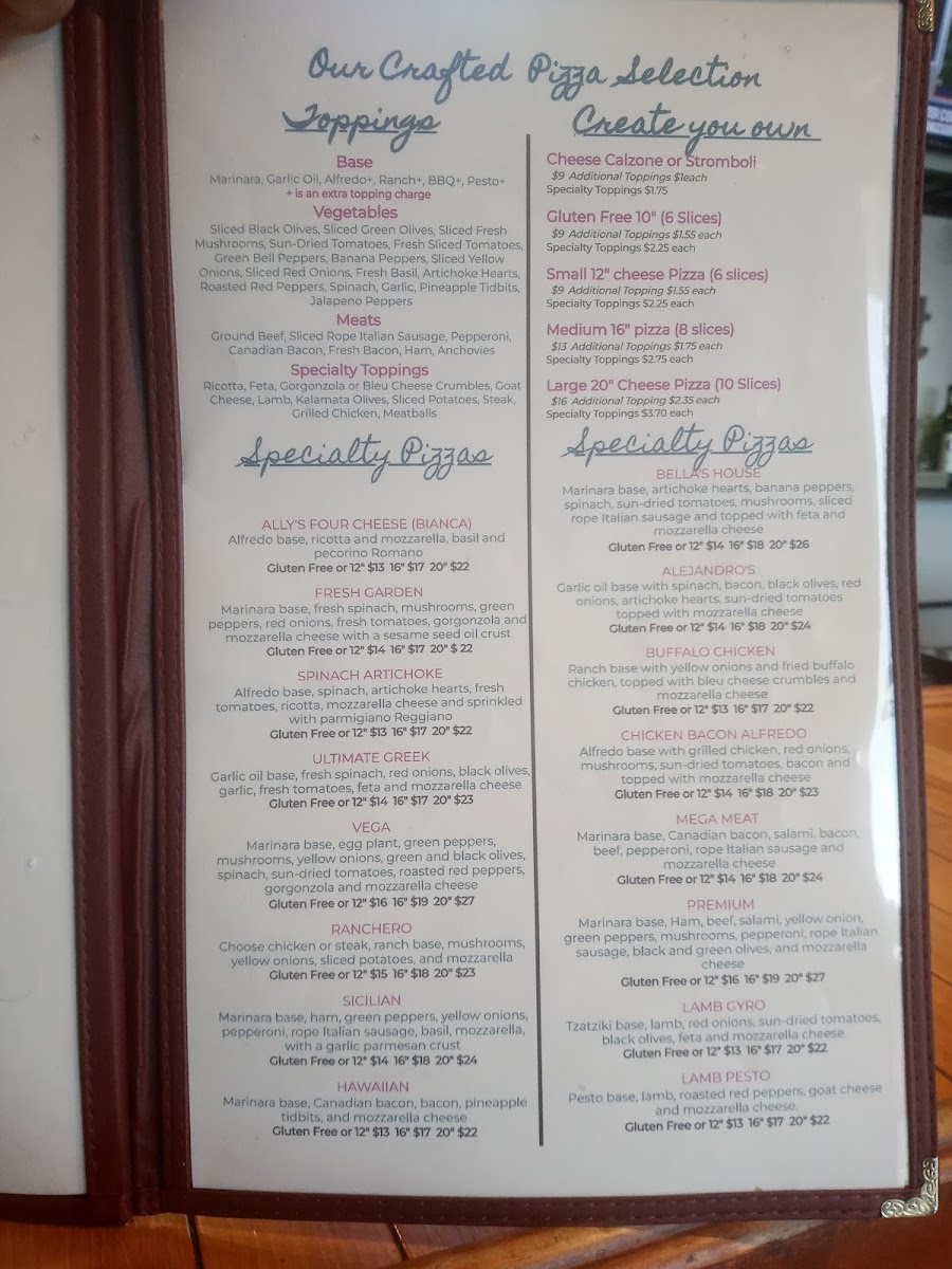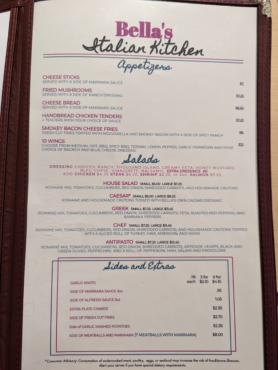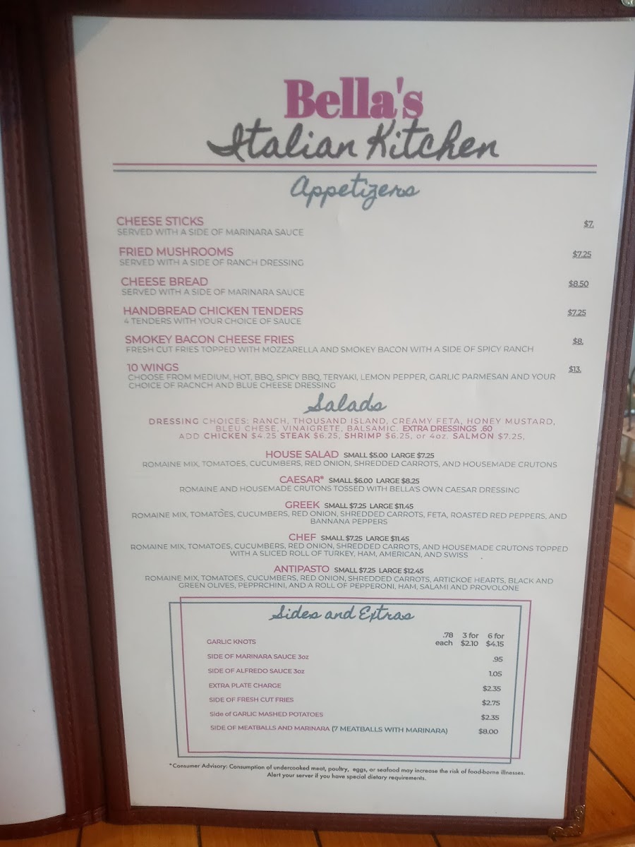 Bella's Steaks, Pasta and More Menu