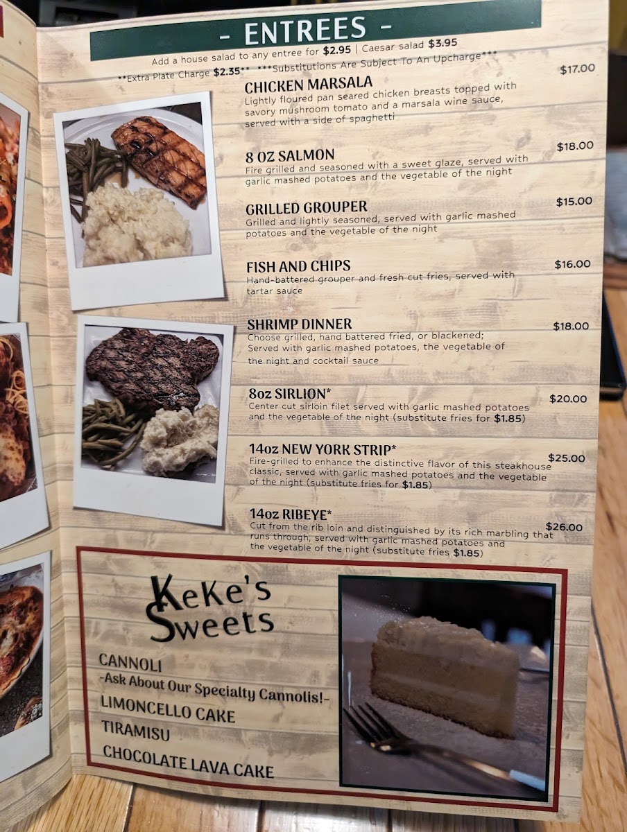 Whether you arrive during a busy weekend evening or a quieter weekday, the menu reflects a straightforward, well-rounded approach to Italian-inspired dining paired with quality steaks and fresh seafood, all served in a space where a comfortable, unhurried meal feels natural.